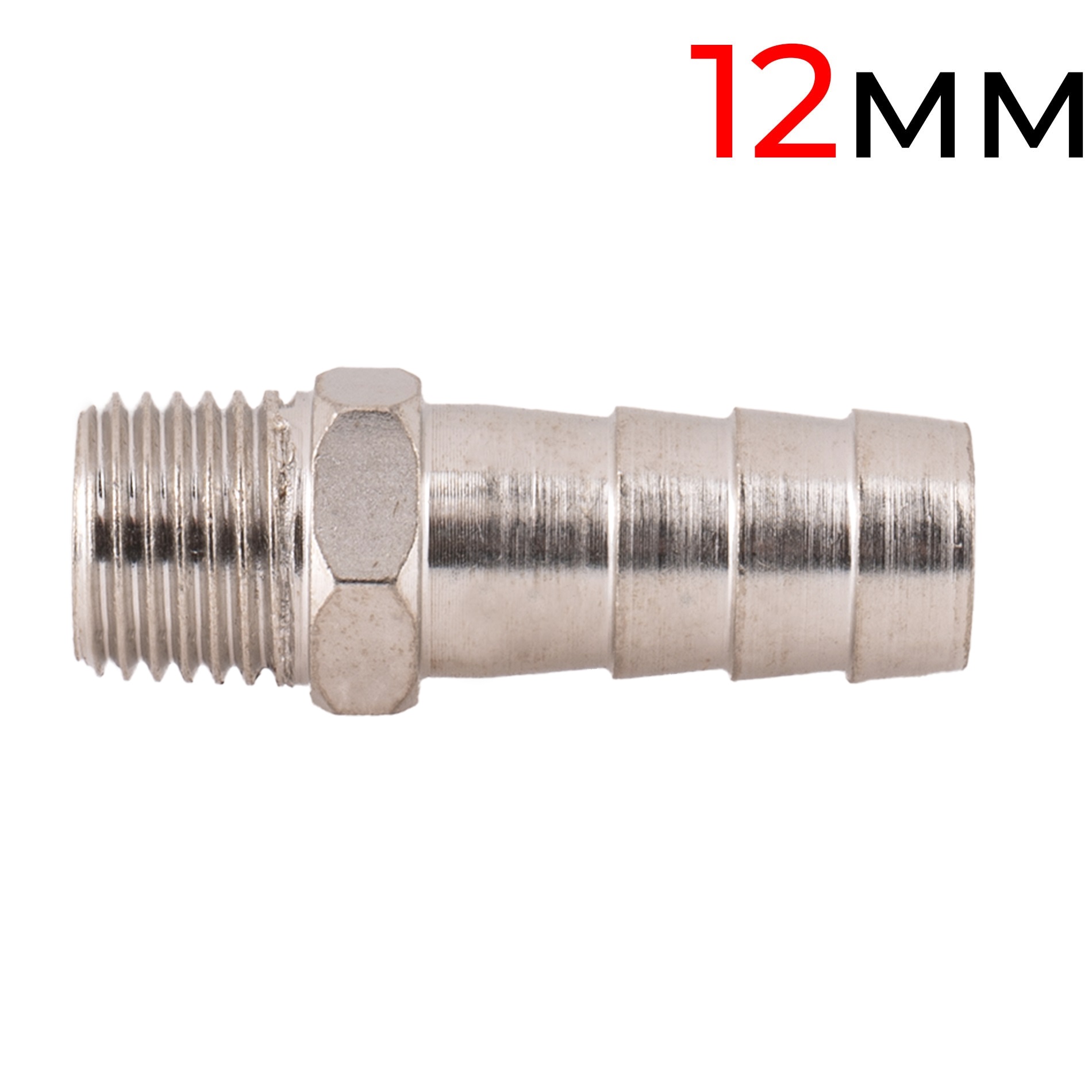 Фитинг для шланга "елочка" 12 мм, наружная резьба М1/4", арт. BM-SMH04/08, никелированная сталь.