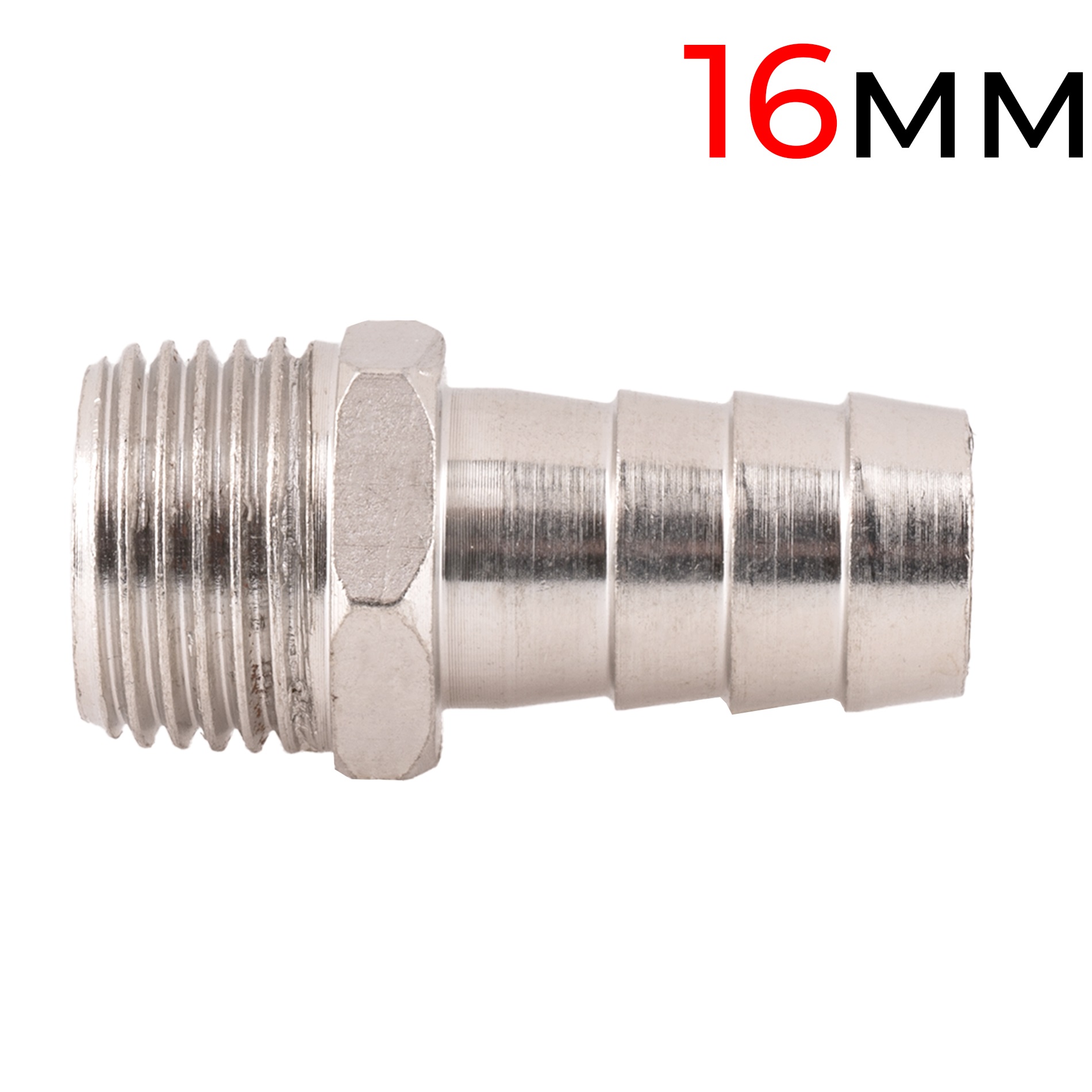 Фитинг для шланга "елочка" 16 мм, наружная резьба М1/2", арт. BM-SMH08/10, никелированная сталь.
