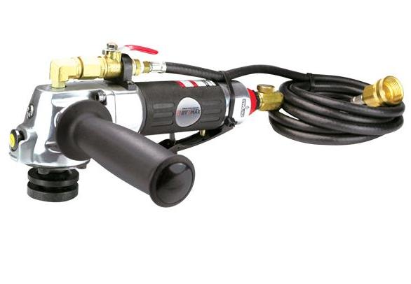 Угловая пневматическая шлифмашинкас подачей воды BM-5D-6192AW и c частотой вращения 10000 об/мин отлично подойдет для резки, полировки,шлифовки и доводке различныхповерхностей из природного и искусcтвенного камня.Снабжена защитным кожухом подкруги диаметром 125 мм, в том числе абразивныезачистные илиалмазныеотрезные. Отличается высоким эксплуатационным ресурсом и рекомендована для использования в тяжелых условиях.
