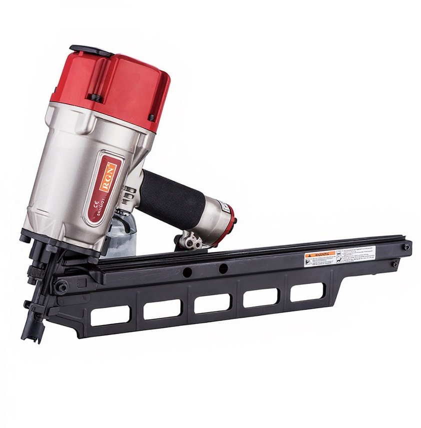 Гвоздезабивной пневматический реечный пистолет RGN SRN9021L для реечных гвоздей в пластиковой обойме с углом наклона 21° и длиной 50-83 мм. Инструмент прекрасно подойдет для применения в деревянном и каркасном домостроении, при изготовлении крупногабаритной деревянной спецтары и упаковки. Инструмент чрезвычайно надежен и прост, его эксплуатация не требует специальных знаний и навыков. d2.87-3.3, dH 7-7.2 мм