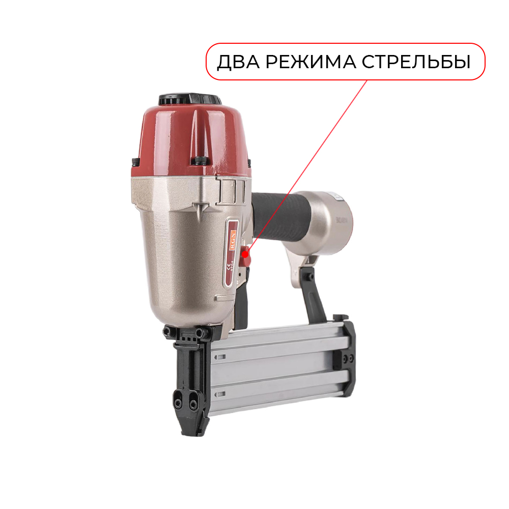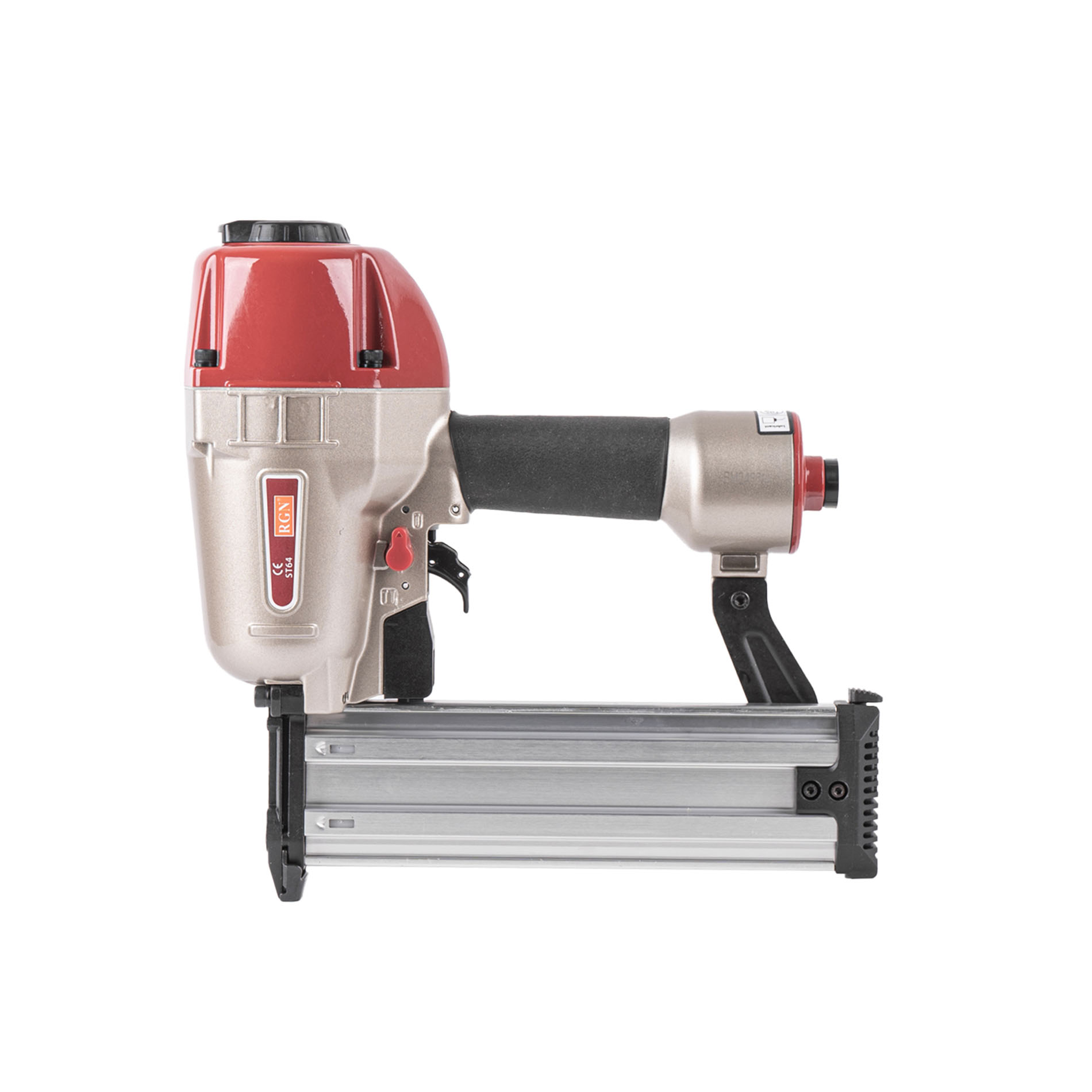 Пневмопистолет для забивания Т-гвоздей RGN ST64 по бетону отличается облегченным корпусом изготовленный из алюминиевого сплава. Данный нейлер пистолет характеризуется невысокой ценой при высоком качестве изготовления и эксплуатационого ресурса. Емкость магазина пневмопистолета - 50 T-гвоздей.