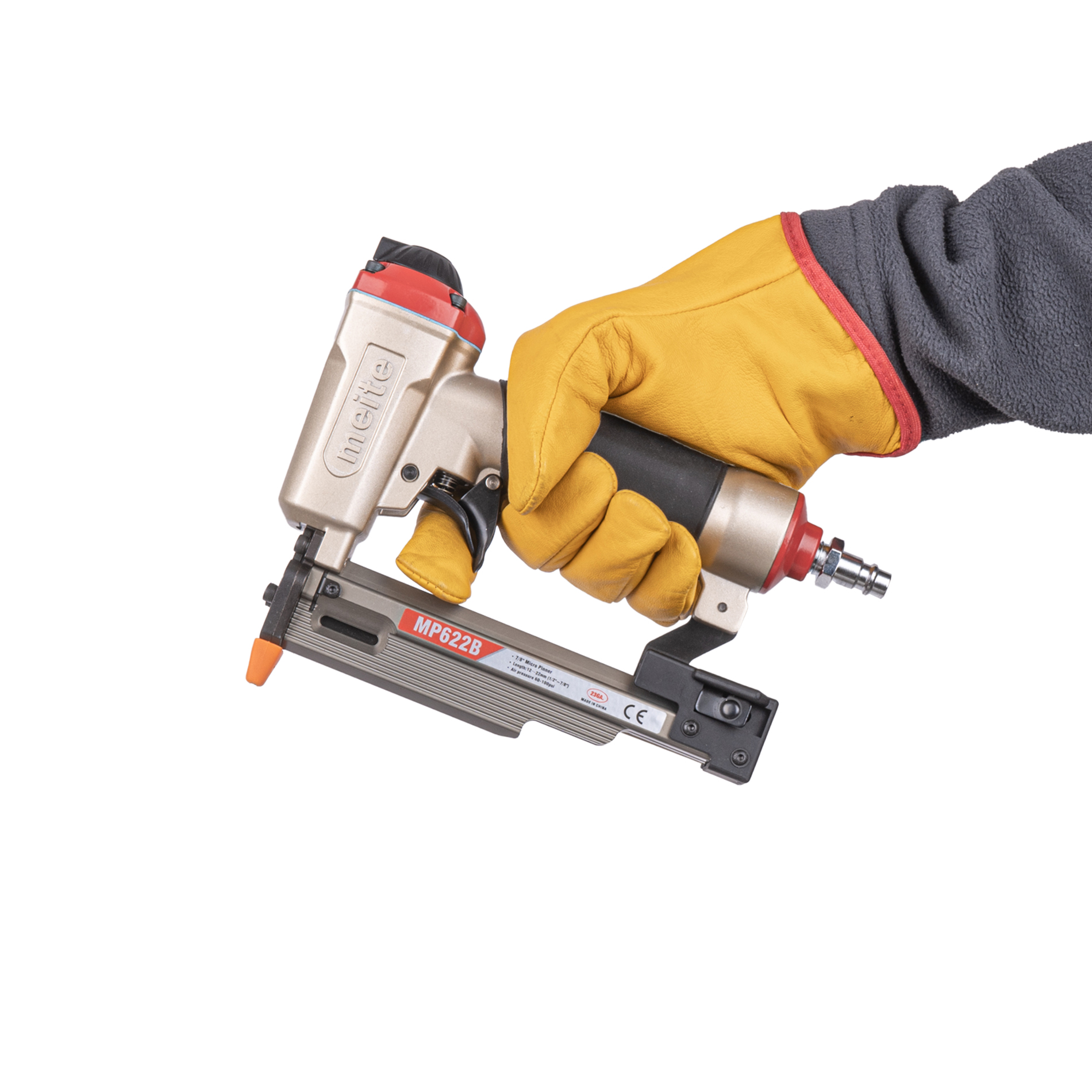 Пневматический шпилькозабивной пистолет meite MP622B предназначен для скрепления некрупных деталей из дерева или пластика и не несущих конструкций. Например, планки, штапики, изготовление картинных и деревянных оконных рам, монтаж молдинга и декора, требующих аккуратного внешнего вида готового изделия. Этот пневматический микрошпилечник применяется с микрошпильками 23GA размером от 10 до 22 мм, которые используются для финишных работ, так как при вбивании не оставляют следа на поверхности.